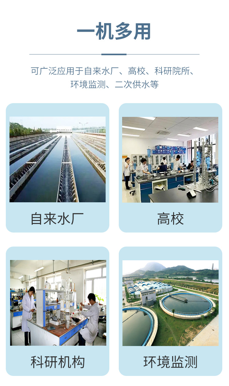 本儀器可用于測定飲用水中的消毒劑指標余氯、總氯、二氧化氯等參數。本儀器可廣泛用于水廠、食品、化工、冶金、環(huán)保及制藥等行業(yè),是常用的戶外及實驗室常用儀器。