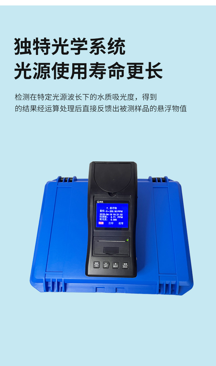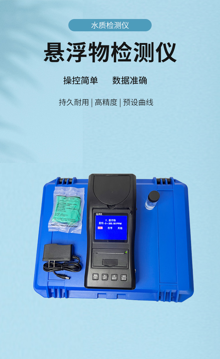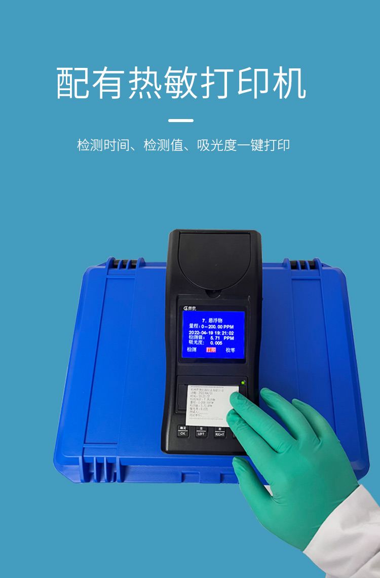 懸浮物水質(zhì)檢測儀可快速準(zhǔn)確測定地表水、地下水、城市污水及工業(yè)廢水中懸浮物指標(biāo),濃度直讀;可廣泛用于水廠、食品、化工、冶金、環(huán)保及制藥行業(yè)等部門。儀器是由單個的固定波長固定用途的分光光度計糅合而成的,采用分光光度法原理對各參數(shù)進(jìn)行測量,在儀器中建立不同參數(shù)的濃度顯色程度與吸光度的線性曲線,儀器通過對顏色的辨別,得出被測水樣的濃度。本儀器采用全中文菜單,操作簡單易懂,使用方便快速測量準(zhǔn)確度高。